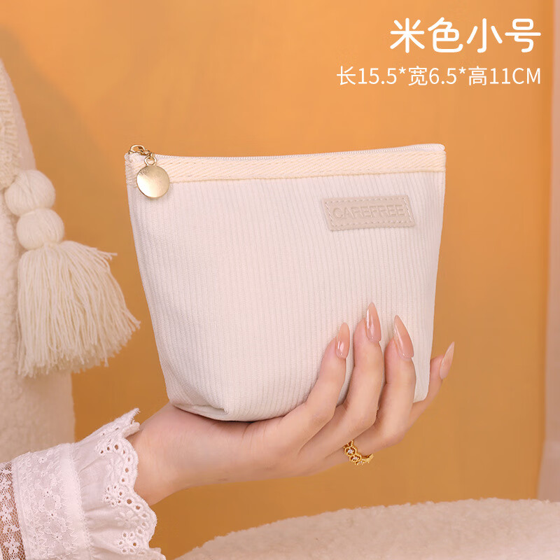 栗好嘉便携补妆包口红粉饼卫生巾收纳包迷你小号手拿包旅行化妆包袋 绒暖便携中号奶酪杏
