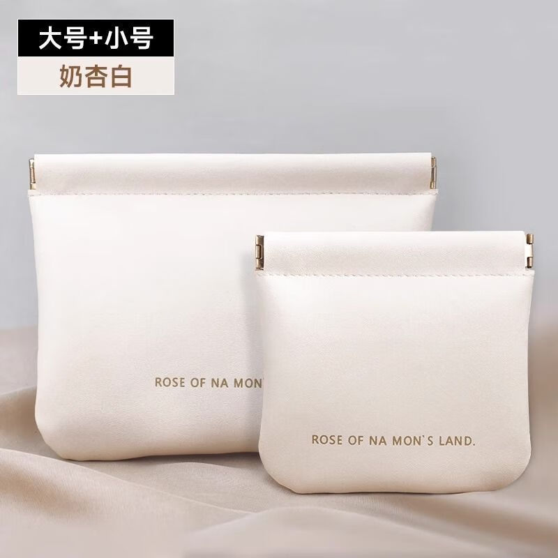 自动闭合收纳包便携收纳随身耳机数据线便携式旅行口红小包迷你 -杏白大小组合装