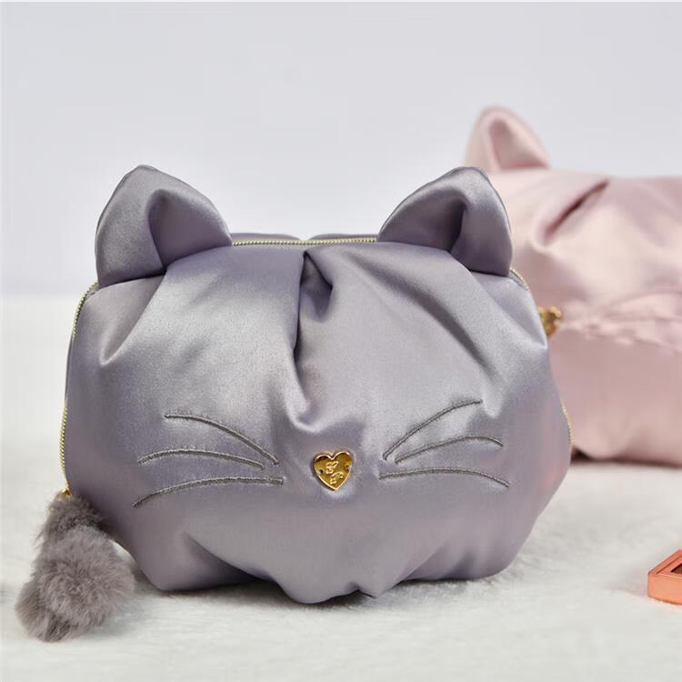 日系新品ins可爱猫咪化妆包迷你小手包口红气垫便携小号收纳包袋 深灰色现货