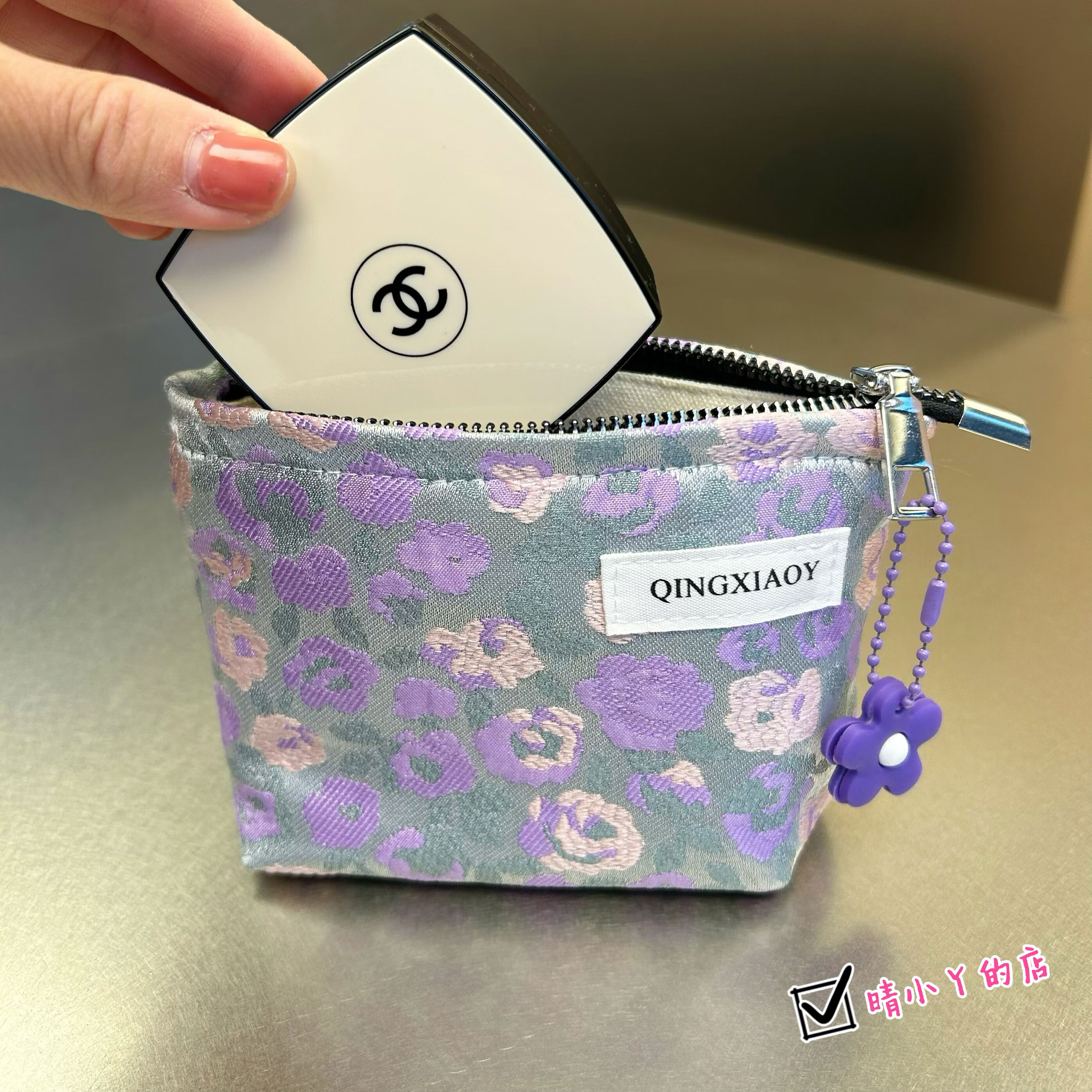 咏幻新款紫色小花大容量化妆包高级感便携补妆包迷你口红收纳包内 小号小巧便捷补妆包