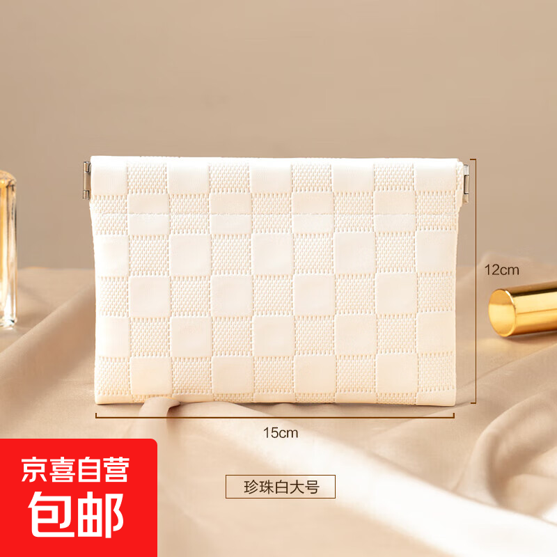 化妆包女2025新款旅行迷你随身化妆袋口红收纳包高级便携收纳小包 珍珠白大号