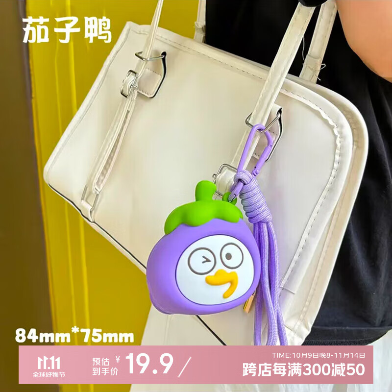 小刘鸭零钱包蔬菜水果耳机迷你硅胶收纳包口红钥匙扣挂件收纳包 茄子鸭