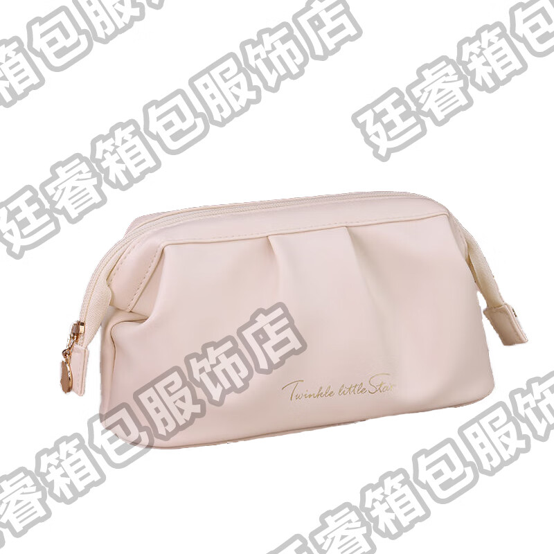 廷睿高颜值爆款褶皱化妆包高级感便携手抓包晚宴包口红粉饼随身收纳包 奶杏白 小包