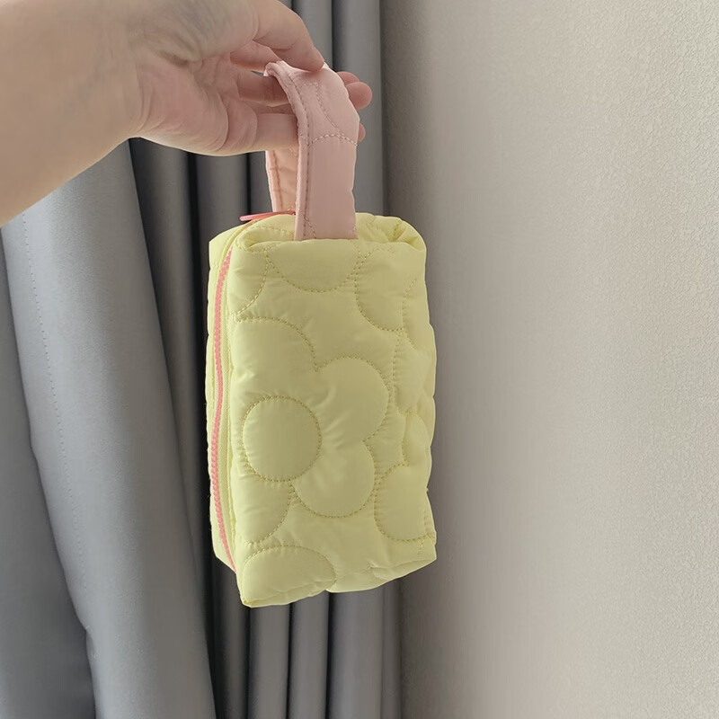 ins简约大容量可爱便携旅行化妆包手提口红收纳袋高级感洗漱包女 嫩黄色