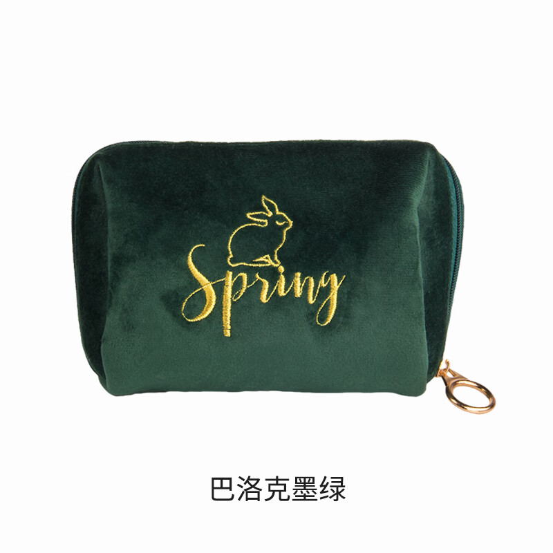 旅行化妆包小号便携随身手包式丝绒高级感时尚粉底口红收纳补妆包 巴洛克墨绿