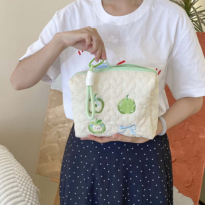 大容量ins颜值可爱小众便携旅行化妆包口红收纳袋高级感洗漱包女 青苹果收纳包