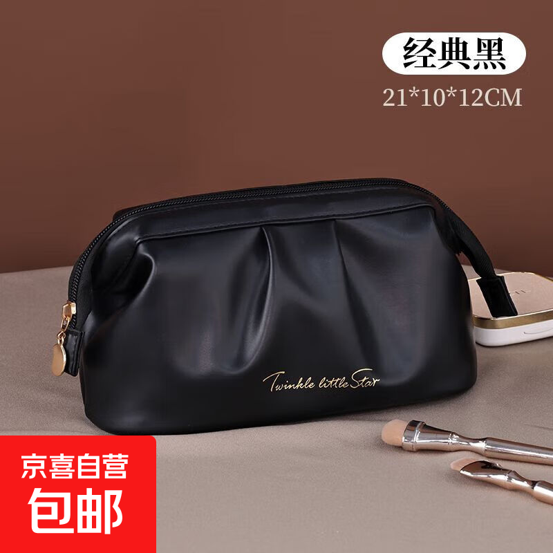 高颜值爆款褶皱化妆包高级感便携手抓包晚宴包口红粉饼随身收纳包 经典黑