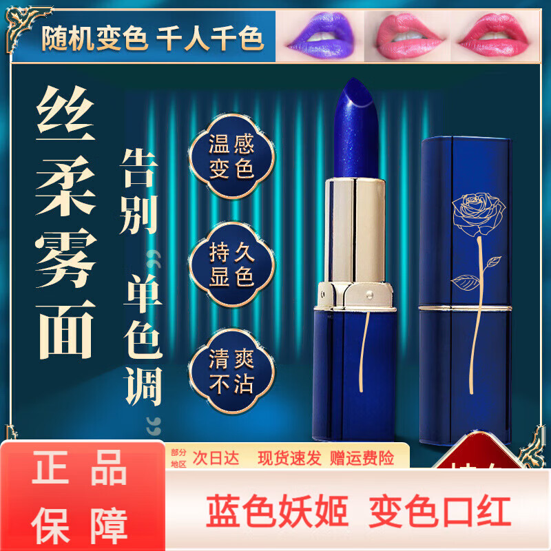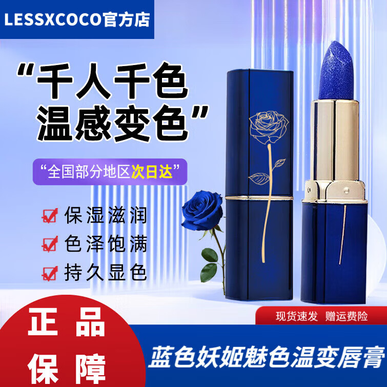 LESSXCOCO蓝色妖姬口红变色口红唇膏不沾杯防水不掉色口红官方正品旗舰店 1支装*3.8g【口红变色基础装】