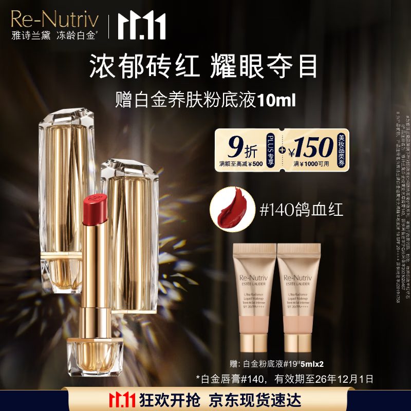 雅诗兰黛白金唇膏140#鸽血红色持久显色显白