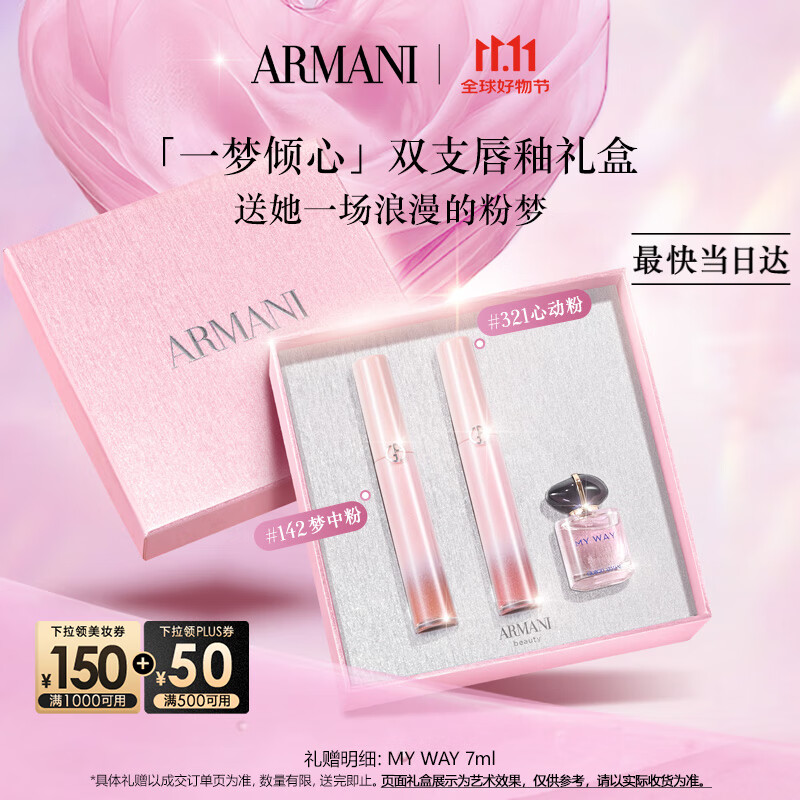 阿玛尼梦中人唇釉双支礼盒(142+321)显白口红不沾杯 生日礼物送女友