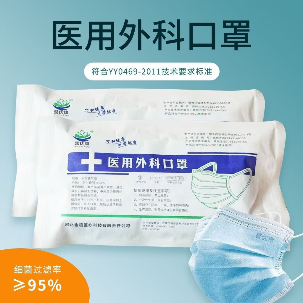 外科一次性口罩级抗病毒一次性口罩 馨优康外科口罩5包/50片