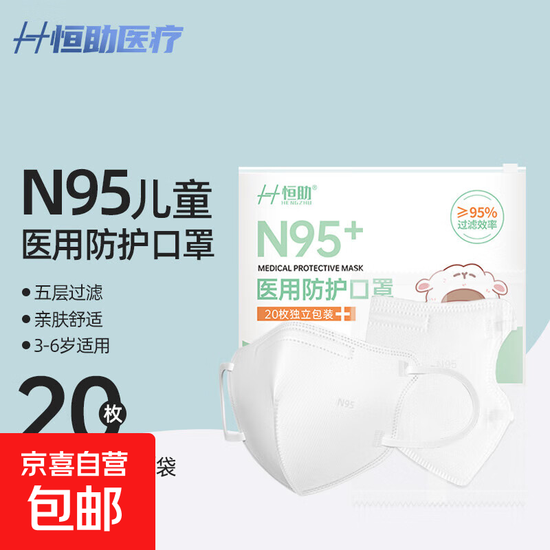 医疗级别防护口罩五层过滤双层熔喷布 儿童M码3-6岁(20片装) 20片