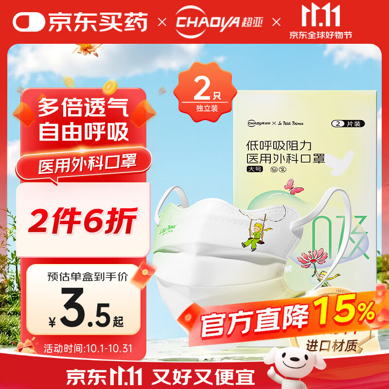 超亚 儿童医用外科口罩100只 超亚医用外科