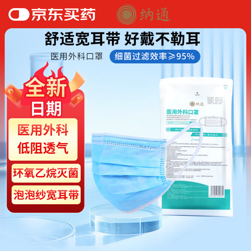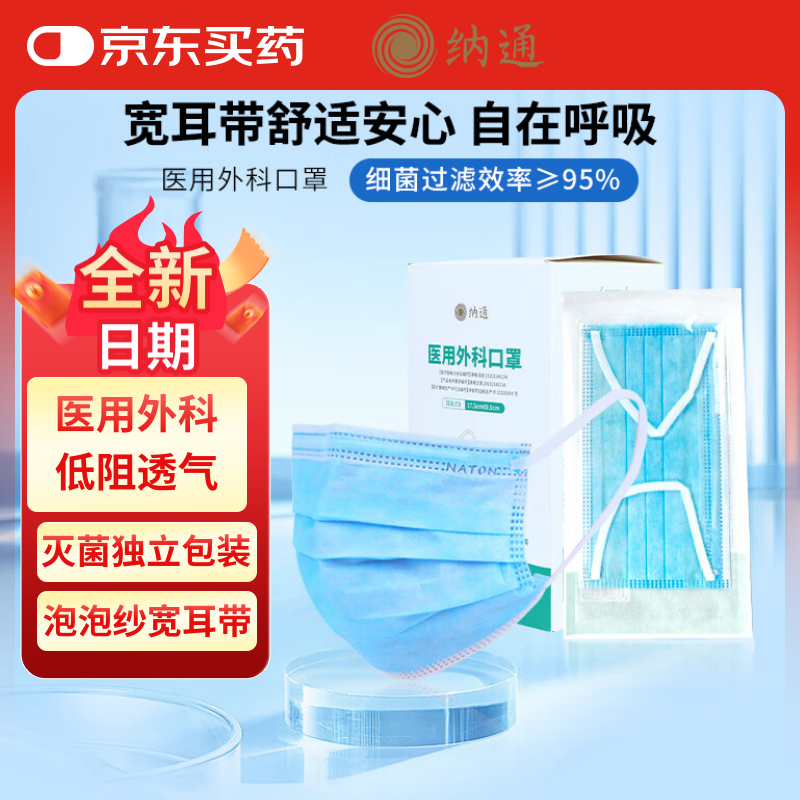 纳通医用外科口罩灭菌级透气一次性医疗防病毒花粉甲流乙流口罩不勒耳