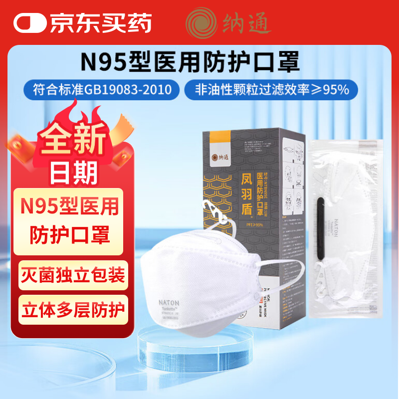 纳通凤羽盾N95级医用防护口罩成人医疗一次性透气防花粉甲流乙流口罩
