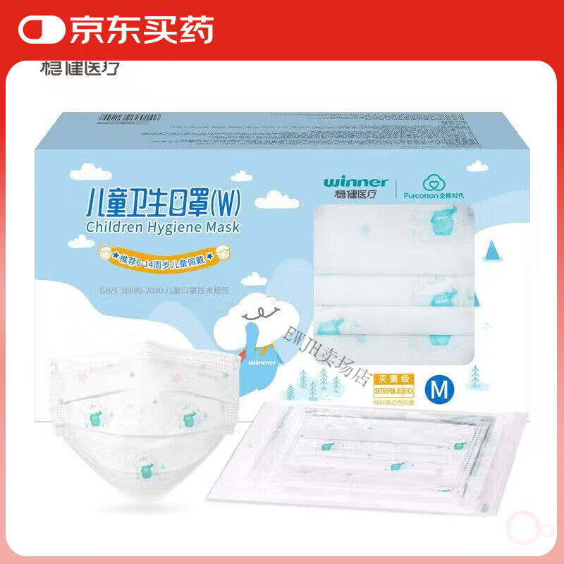 稳健医疗稳健儿童口罩护理一次性口罩6-14岁印花色三层独立装 【+ [+儿童]口罩50片/盒