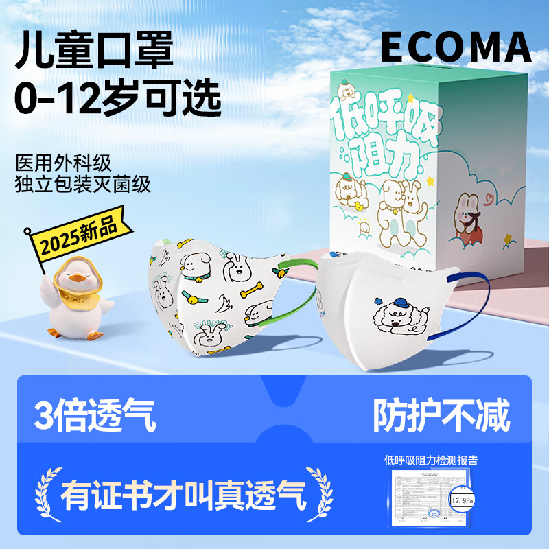 爱科医疗儿童口罩0-3岁婴儿医用外科口罩3D立体3-6-12岁灭菌独立装一次性