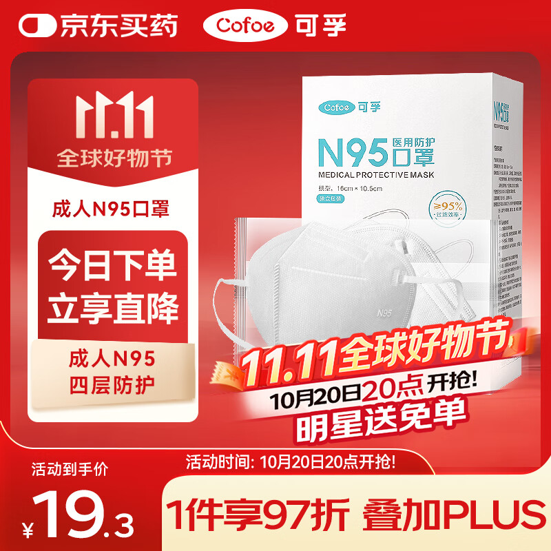 可孚N95医用防护口罩3d立体白一次性医疗级别时尚独立包装无菌型30只