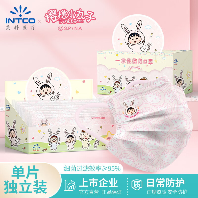 英科医疗 樱桃小丸子口罩 一次性防护口罩 过滤效率大于95% 30只/盒