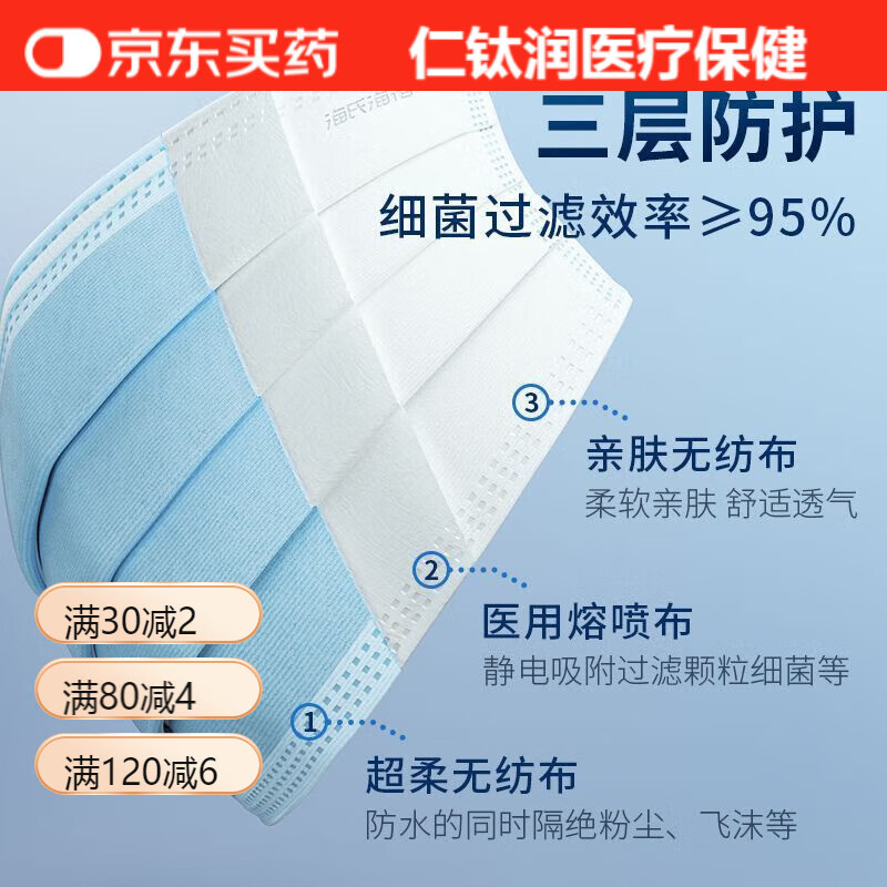 刚需品 金士达 医用口罩一次10袋共100只 11.9 金士达tk医用