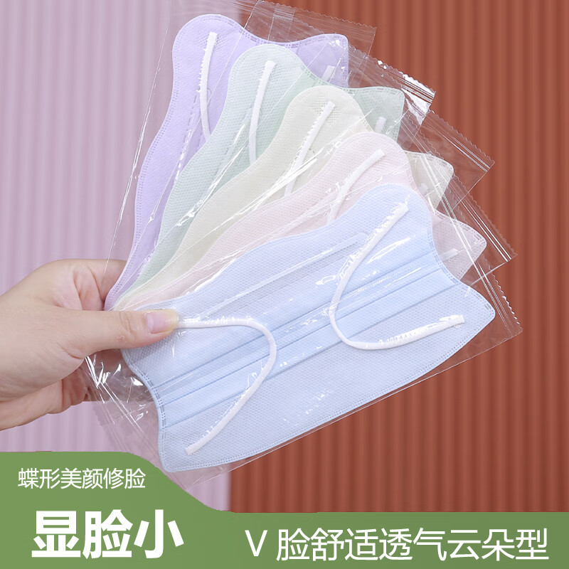 显脸小口罩女高颜值三层防尘透气一次性波浪型护眼角秋冬单独包装 5色马卡龙混搭透气显脸小独立包装 护眼角高颜值透气【200只】囤货更划算