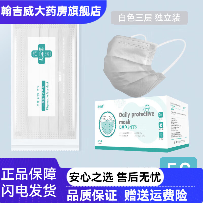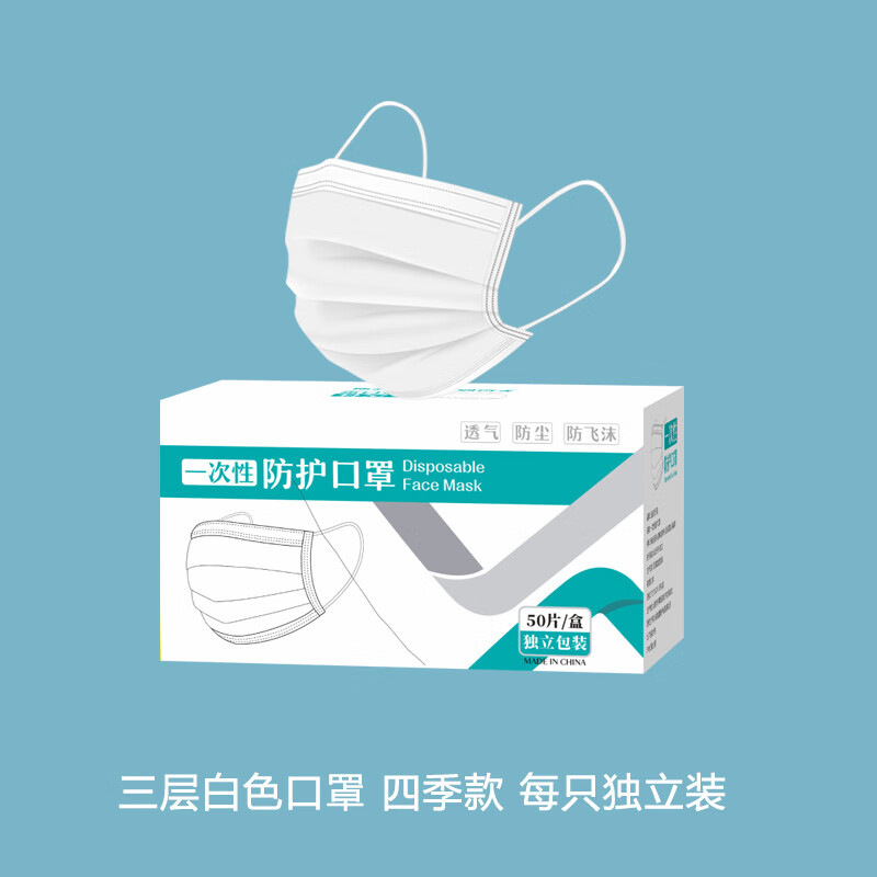 白色口罩一次性防护防尘透气防晒单独包装女男时尚高颜值春季薄款 三层防护【白色-50片】独立包装