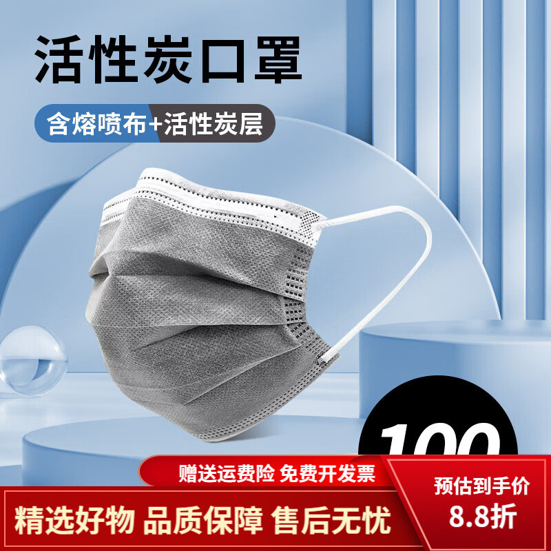 通用电气(GE)活性炭口罩防尘防工业粉尘防尘肺专用雾霾甲醛油烟一次性单独包装 活性炭口罩【100只】非独立装