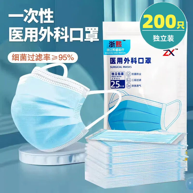 口罩一次性单独包装透气防尘超实用口罩官方旗舰店 [独立包装]外科蓝色200祇