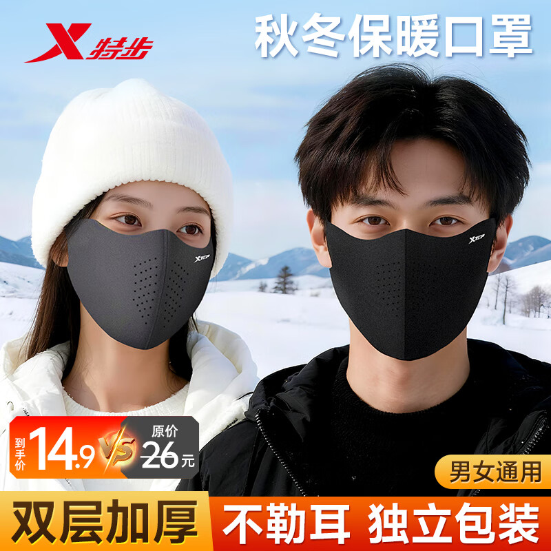 特步(XTEP)特步保暖口罩秋冬骑行面罩男女滑雪骑车防寒风加绒加厚透气口罩