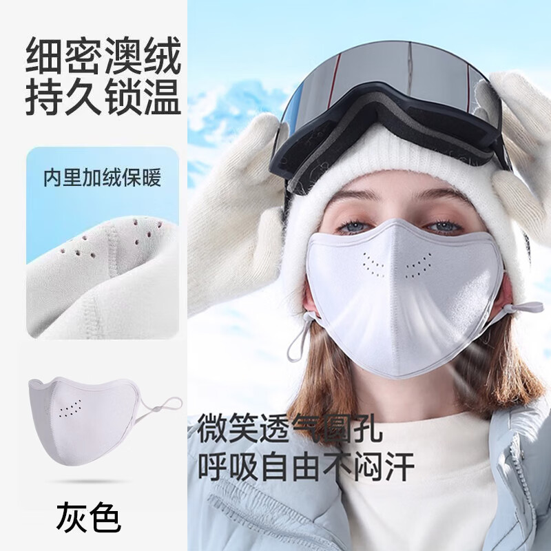 原谅色奥绒保暖口罩防寒东北滑雪口罩高颜值男女秋冬季防寒防风冬天面罩 灰色【1个装】