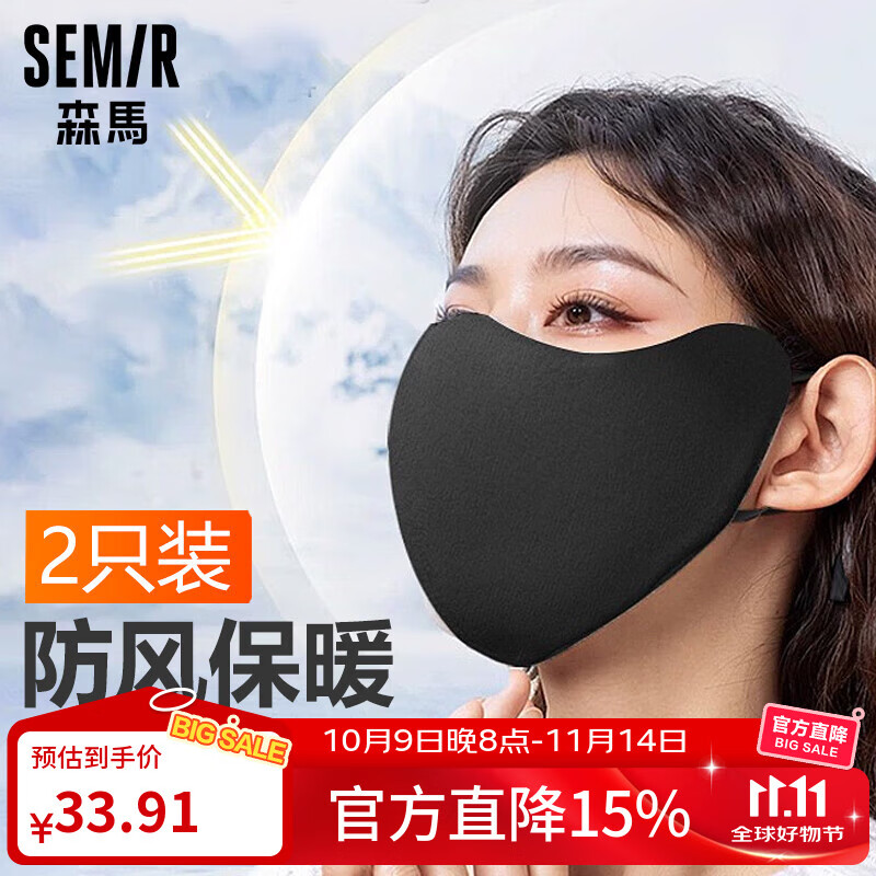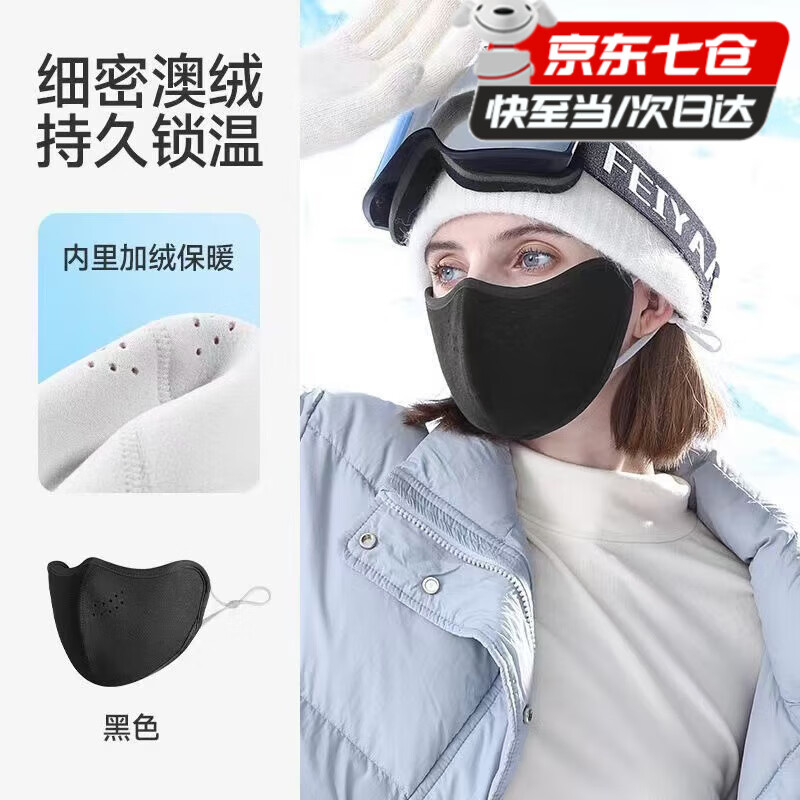 森马纯色立体口罩保暖口罩男女秋冬季户外骑行电动车防风防寒 黑色