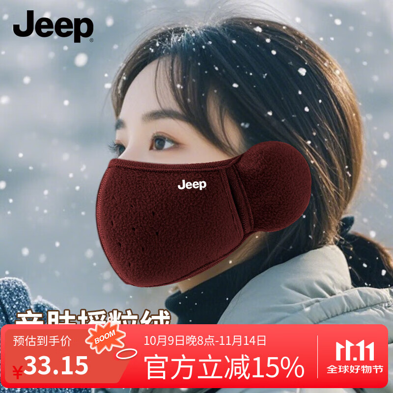 JEEP保暖口罩男女冬季防风防寒棉口罩男士护耳口罩耳包耳套耳暖耳捂 酒红色