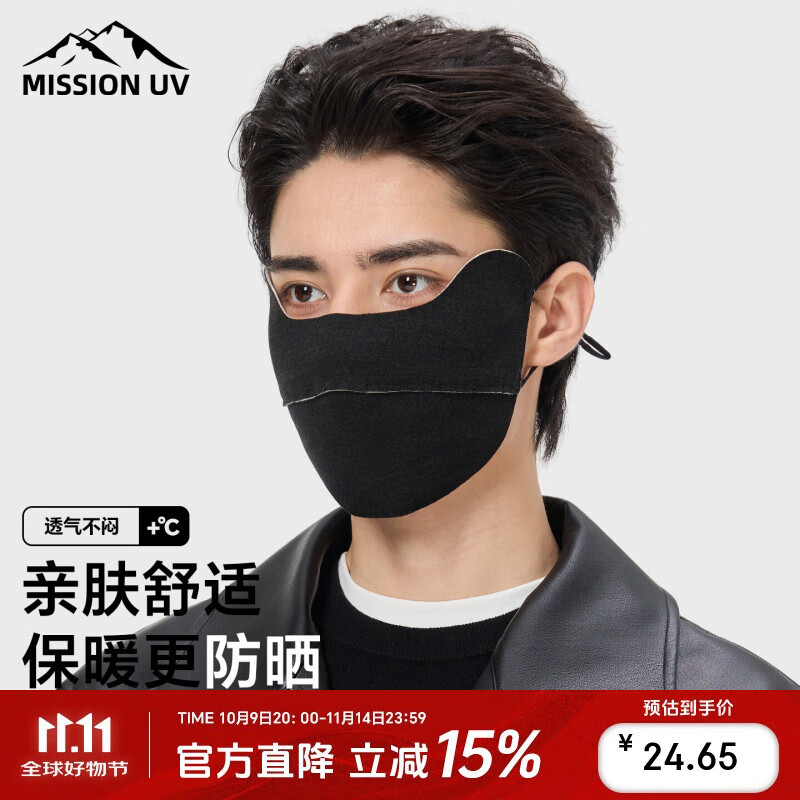 MISSION UV护眼角保暖防晒口罩男冬季男士防风防寒