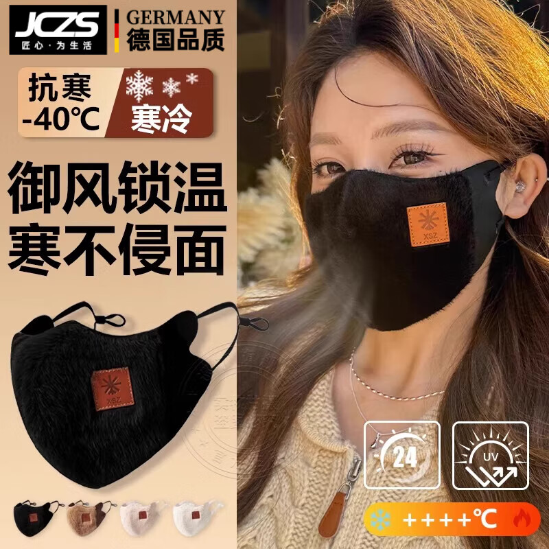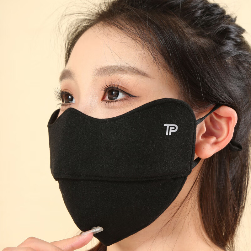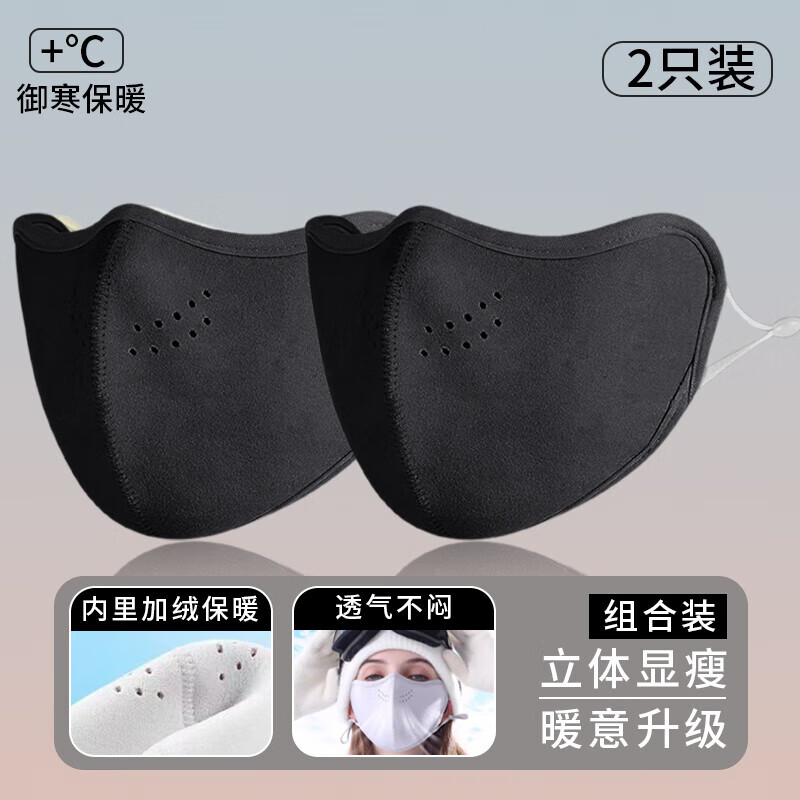 2025秋冬季保暖口罩防风防寒女秋冬天加厚骑行骑车滑雪口罩高颜值 保暖口罩-黑色-1个