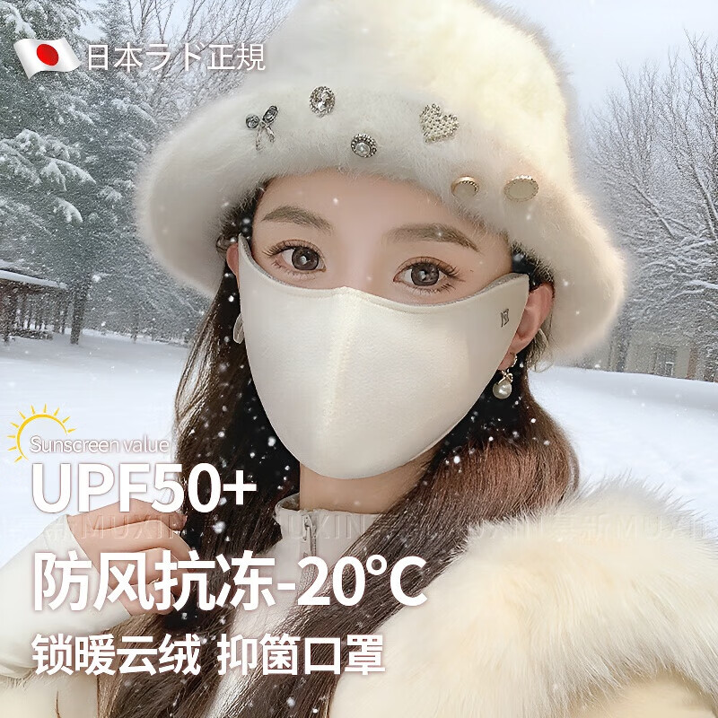 奥绒保暖口罩防寒东北滑雪口罩高颜值男女秋冬季防寒防风冬天面罩 澳绒奶油白【透气不闷】