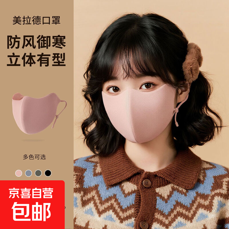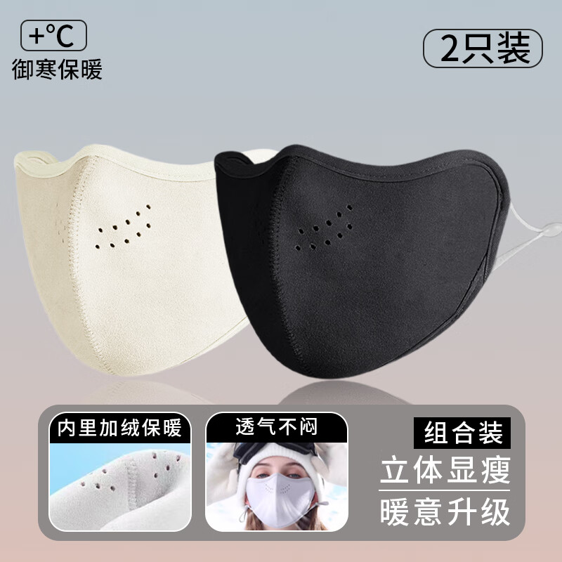 2025冬季保暖口罩防风防寒女秋冬天加厚骑行骑车滑雪口罩高颜值 随机颜色【2个装】