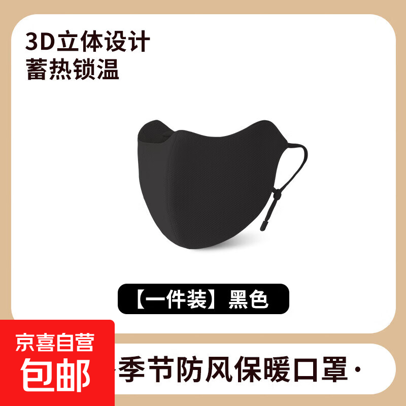 创京懿选男士口罩冬天季保暖冬天防寒电动车骑行防风加厚防尘透气棉黑色 保暖立体口罩-D款(黑色)-1个装