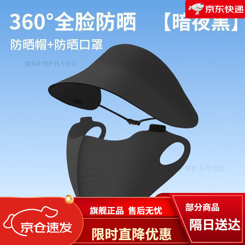 馍彭防晒口罩高颜值2025新款防紫外线面罩女夏季套装遮阳帽透气胶原蛋 暗夜黑