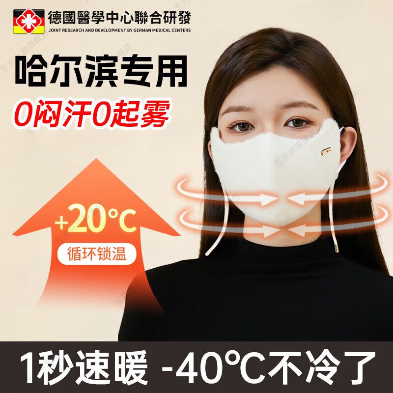 铭隋大脸显脸小口罩冬天防风防寒女高颜值2025新款冬季保暖防晒防冻脸 白色