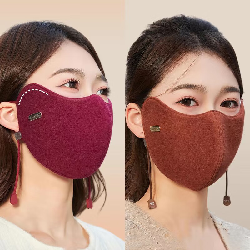 溥畔2025新款冬季口罩女高颜值秋冬季加厚防风防寒德绒双面保暖口罩 2075德绒口罩【安可拉红+焦糖色