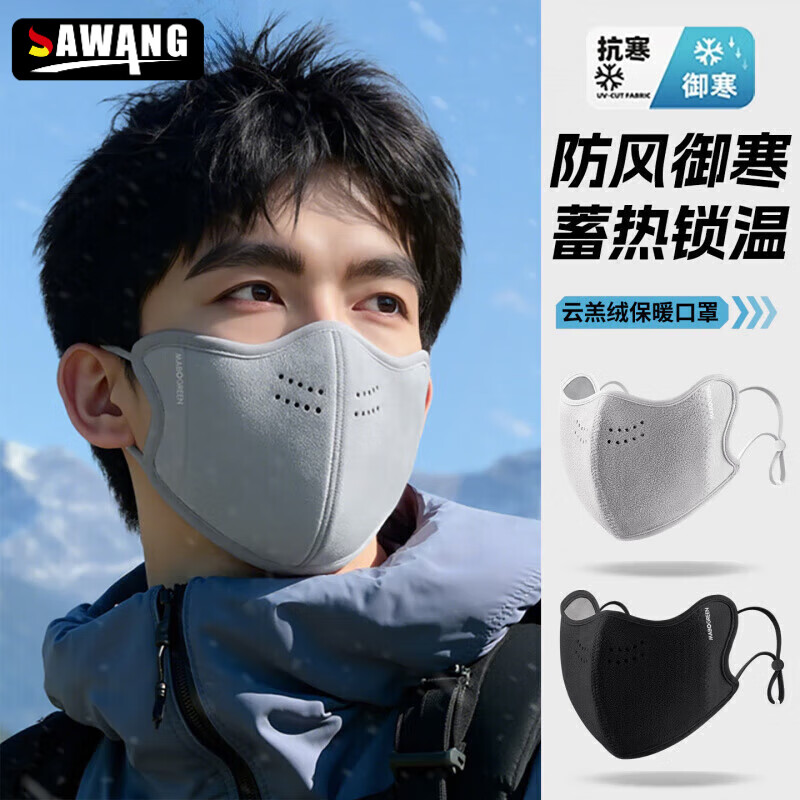 飒望冬季口罩女高颜值保暖2025新款冬天骑行加绒加厚防风防寒护耳 灰色保暖口罩[蓄热保暖护耳]
