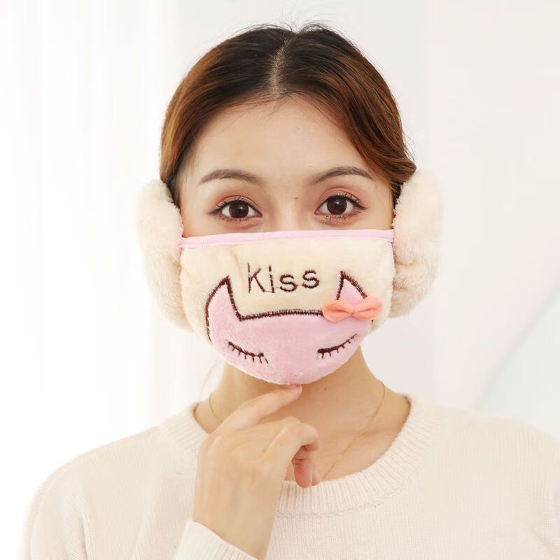 口罩女高颜值秋冬季2025新款冬女成人加厚防寒男女护耳保暖骑车二 浅粉猫