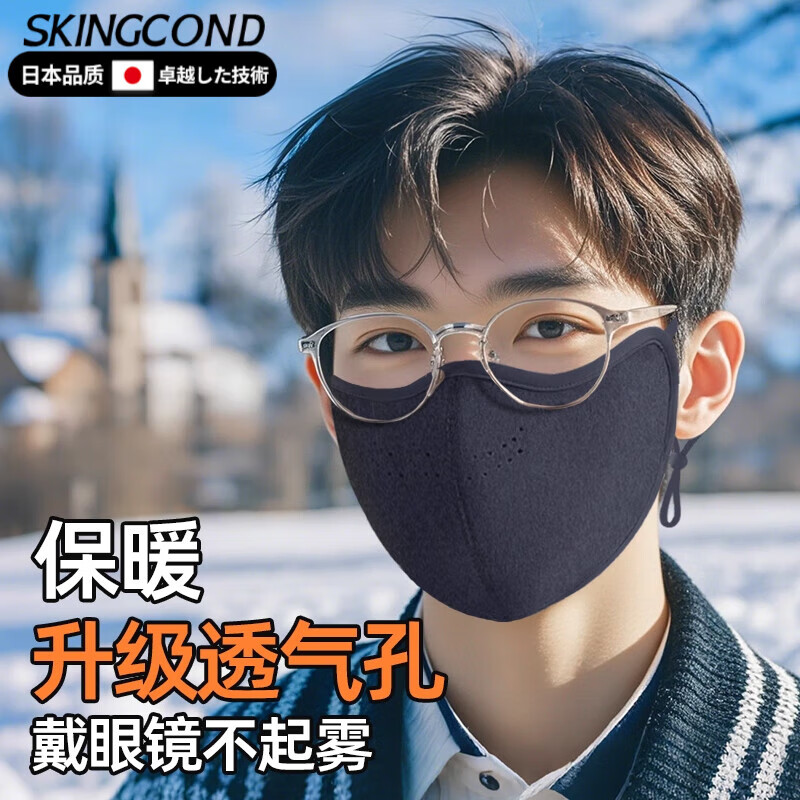 skingcond保暖口罩冬季男潮款防风防寒男款女高颜值2025新款冬季可水洗透气 澳绒秋冬加厚保暖【星辰黑 圆孔透气款】 保暖防风