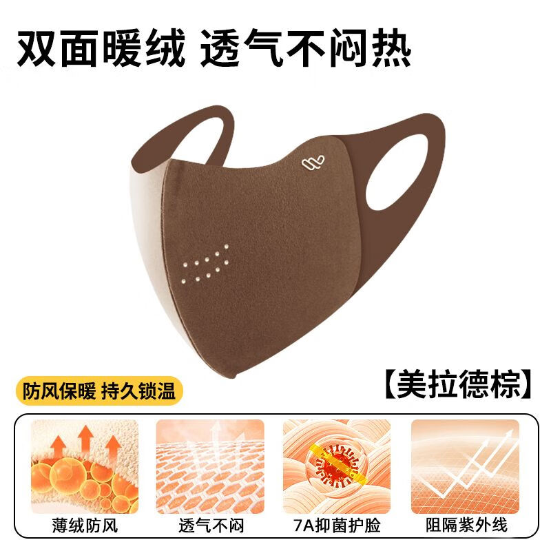 保暖口罩秋冬款防风加绒加厚女高颜值2025新款冬季防寒3d立体透气 双面暖绒丨防风防寒[暖棕色] 立显小V脸丨透气孔不闷水汽