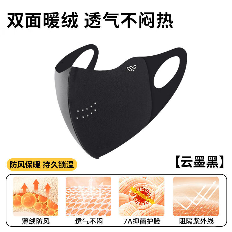 保暖口罩秋冬款防风加绒加厚女高颜值2025新款冬季防寒3d立体透气 双面暖绒丨防风防寒[墨黑色] 立显小V脸丨透气孔不闷水汽