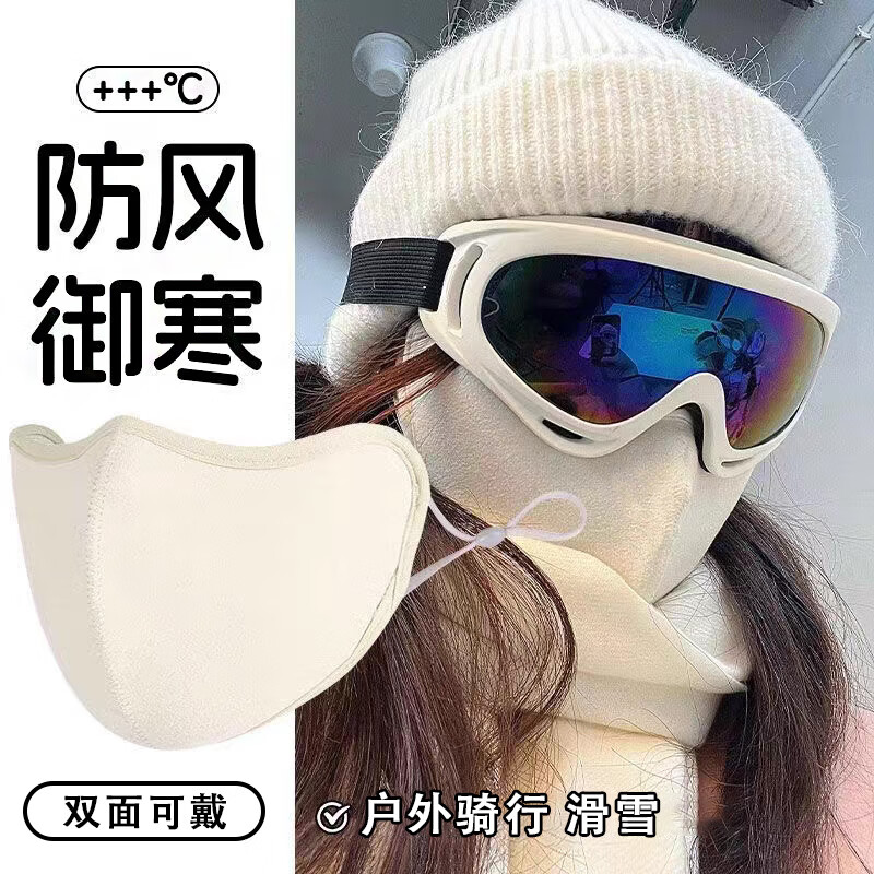 斐卡薇保暖口罩女秋冬季2025新款高颜值滑雪面罩防风防寒骑行护脸骑车 米色-双面可戴