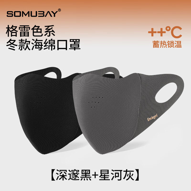 苏木佰(SOMUBAY)秋冬季防寒口罩女高颜值2025新款立体加大加厚护眼角保暖面罩男潮 深邃黑+星河灰【格雷色系2个更优惠】 M码(80-140斤)建议女生