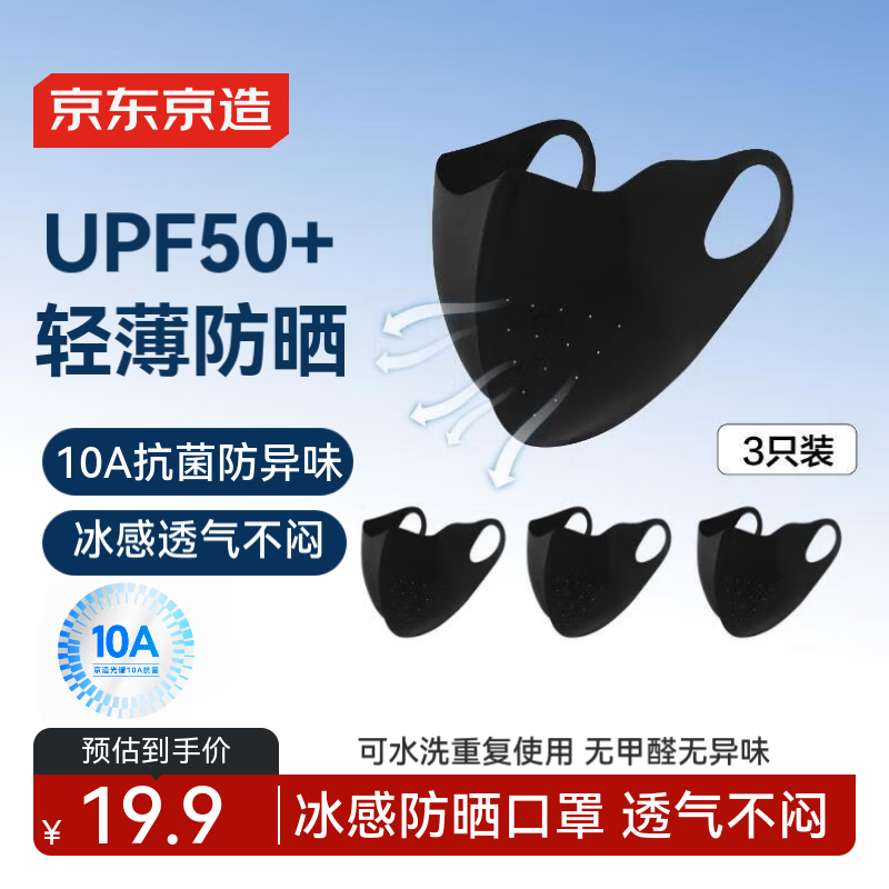 京东京造【高颜值】3只装防晒口罩面罩男女同款冰丝超薄凉感防紫外线
