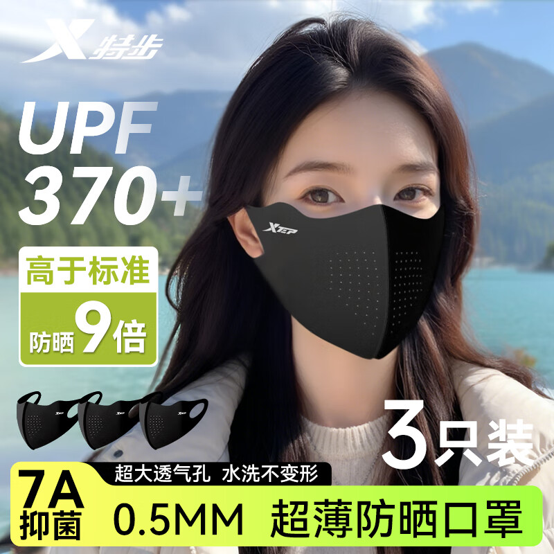 特步(XTEP)保暖口罩秋冬季骑行防寒晒面罩男女同款防紫外线立体高颜值骑行黑