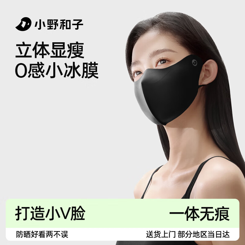 小野和子防晒口罩防紫外线女夏季护眼角立体无痕冰丝面罩 曜石黑